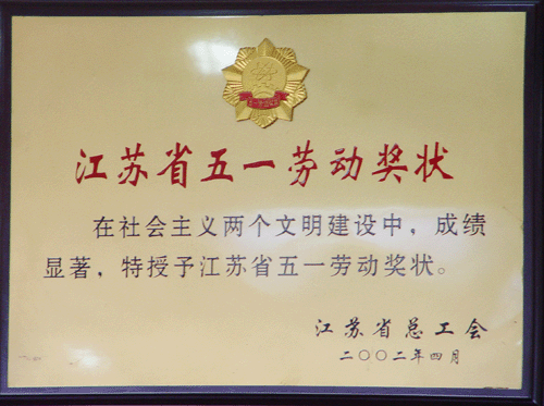 > 2002年度江蘇省五一勞動獎(jiǎng)狀