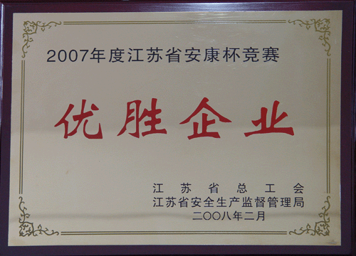 2007年度江蘇省安康杯競(jìng)賽優(yōu)勝企業(yè)