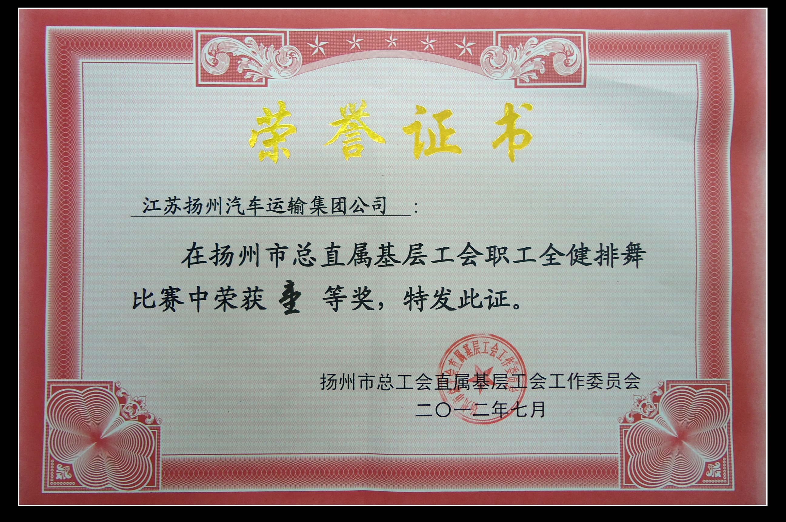 > 揚州市總直屬基層工會職工全健排舞比賽一等獎