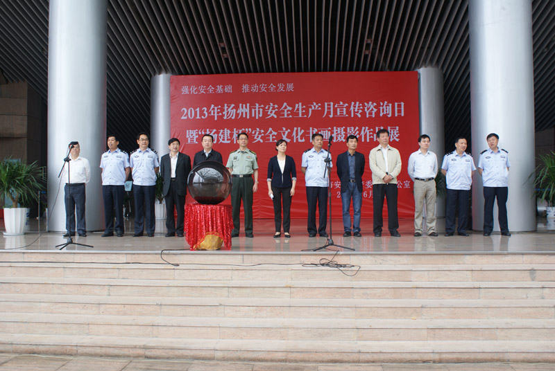 6月9日上午,2013年揚州市“安全生產(chǎn)月”宣傳咨詢?nèi)蒸?ldquo;揚建杯”安全文化書畫攝影作品展在市美術(shù)館北門廣場舉辦。副市長張寶娟出席了當(dāng)天的活動,并和廣大市民一同參觀安全文化書畫攝影作品。市安監(jiān)局、交通局、公安局、建設(shè)局、氣象局、質(zhì)監(jiān)局等單位領(lǐng)導(dǎo),以及部分駐揚單位職工代表,共計400余人參加了活動。