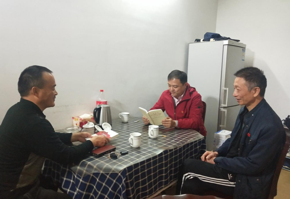 郭宏祥是支部一名老黨員,身患疾病在家休養(yǎng),主題教育開始后,該黨員多次因無法參加組織活動而向支部表達歉意。為此,旅游出租支部書記趙磊主動與該同志結對,為他“送黨課、送教材”。11月3日,旅游出租支部一行三人攜帶慰問品和主題教育相關教材來到郭宏祥家,在送去組織親切慰問的同時,向其發(fā)放了《習近平關于“不忘初心、牢記使命”重要論述選編》、《習近平新時代中國特色社會主義思想學習綱要》、主題教育應知應會30條口袋讀本以及學習筆記本。