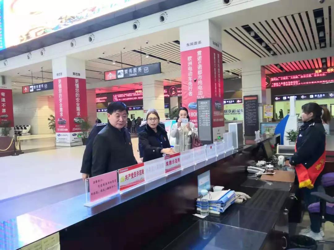 吳忠俊一行先后來到車站服務(wù)大廳、售票窗口等重點(diǎn)部位,查看了相關(guān)崗位面向服務(wù)對象、面向職工群眾亮身份、亮承諾、亮標(biāo)準(zhǔn)、亮作為情況。并通過座談會(huì)形式,與支部黨員、干部代表面對面交流,了解支部在推動(dòng)中心工作開展、凝心聚力等方面的主要做法,聽取了一線生產(chǎn)經(jīng)營中存在的困難問題及有關(guān)意見建議。