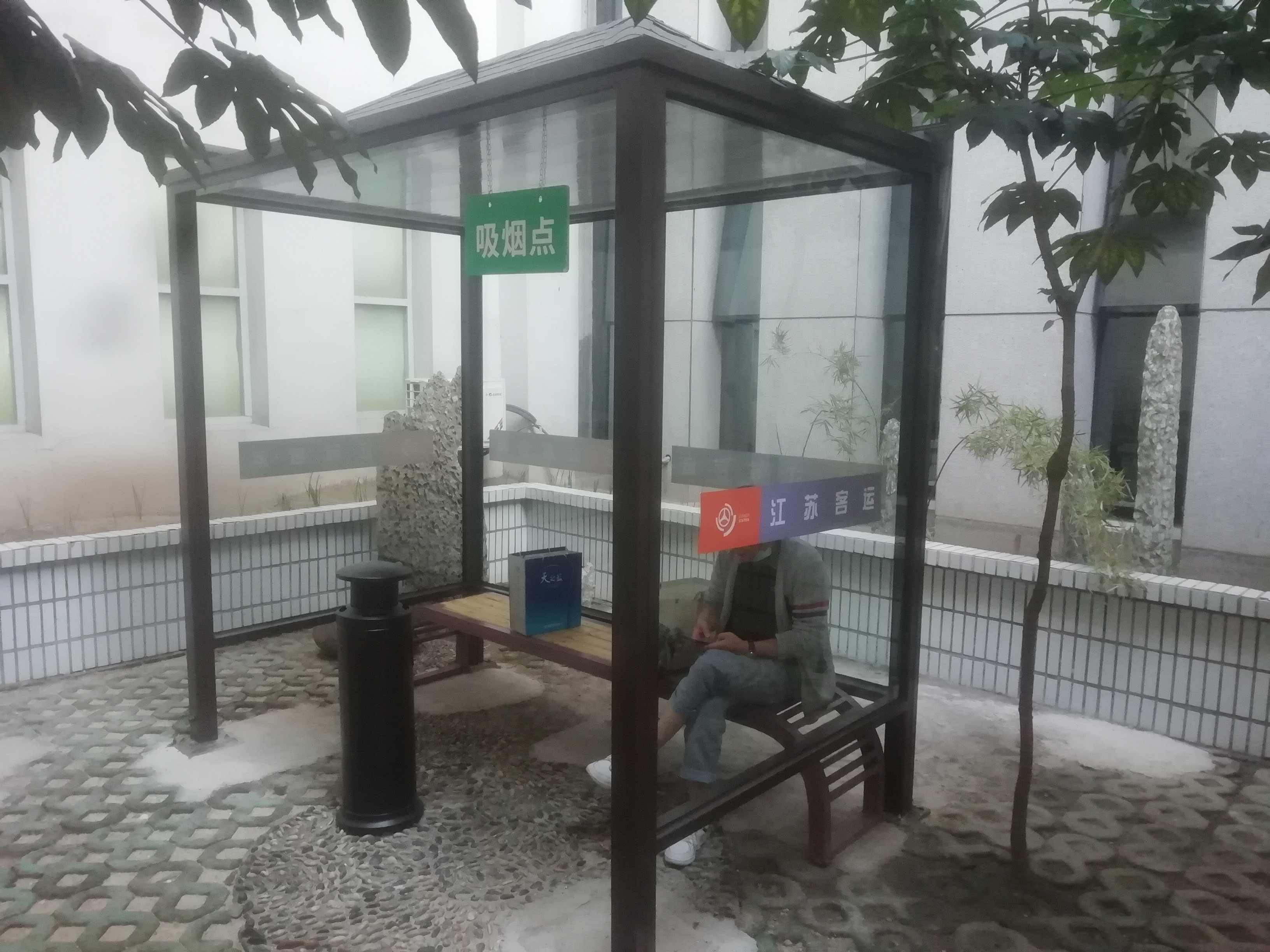 近日,汽車(chē)東站候車(chē)廳的東西兩側(cè)新添了一道風(fēng)景線(xiàn),在原本設(shè)置的露天吸煙室里各添置了一個(gè)吸煙亭,下雨的日子里,旅客也可以坐在室外抽煙了。