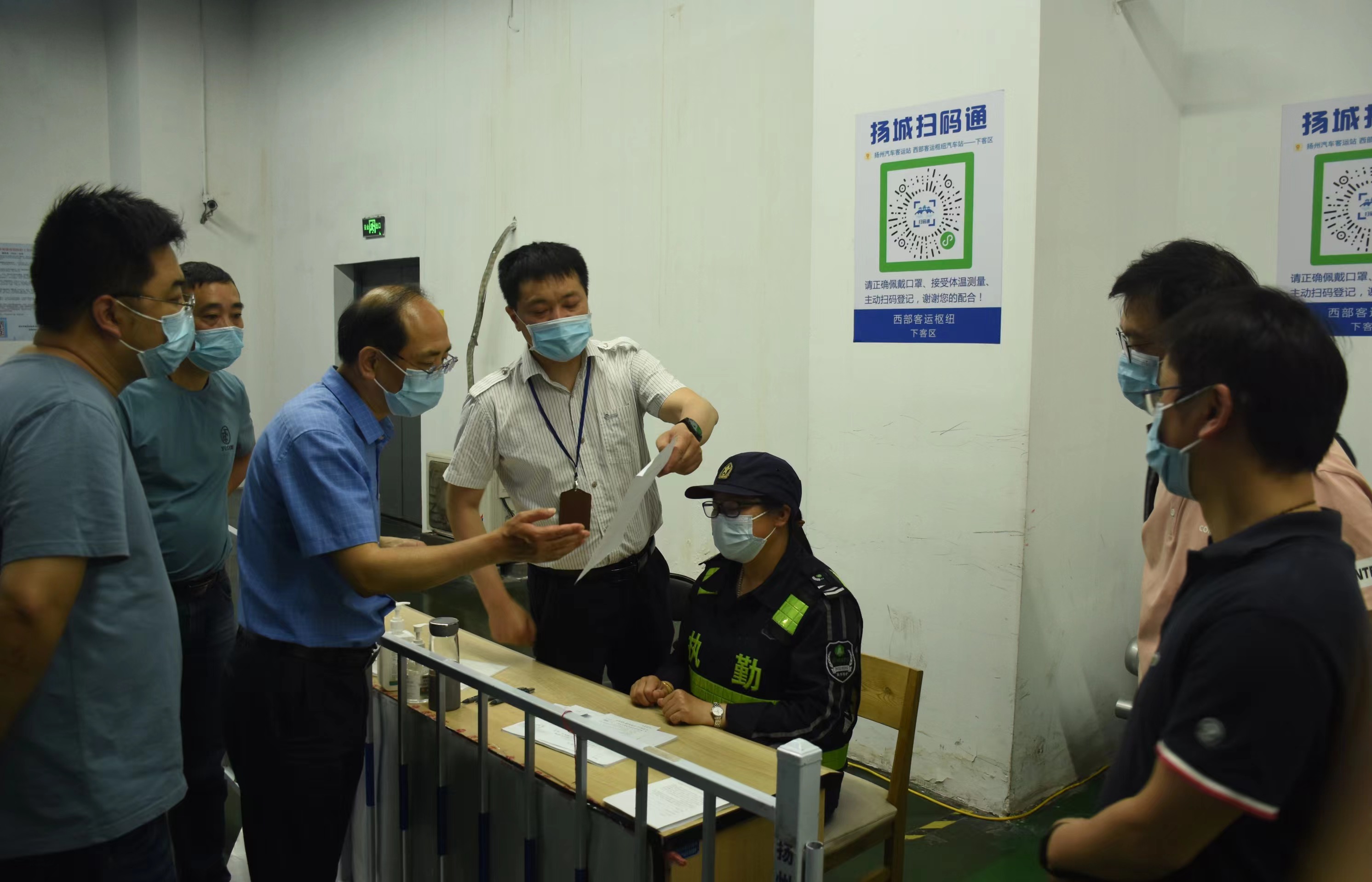 陳家宏一行實地查看了旅客進(jìn)站口、售票大廳、下客區(qū)出站口等區(qū)域,通過聽取匯報、溝通交流、翻閱資料等方式詳細(xì)了解了揚州汽車站現(xiàn)階段疫情防控工作的落實情況。