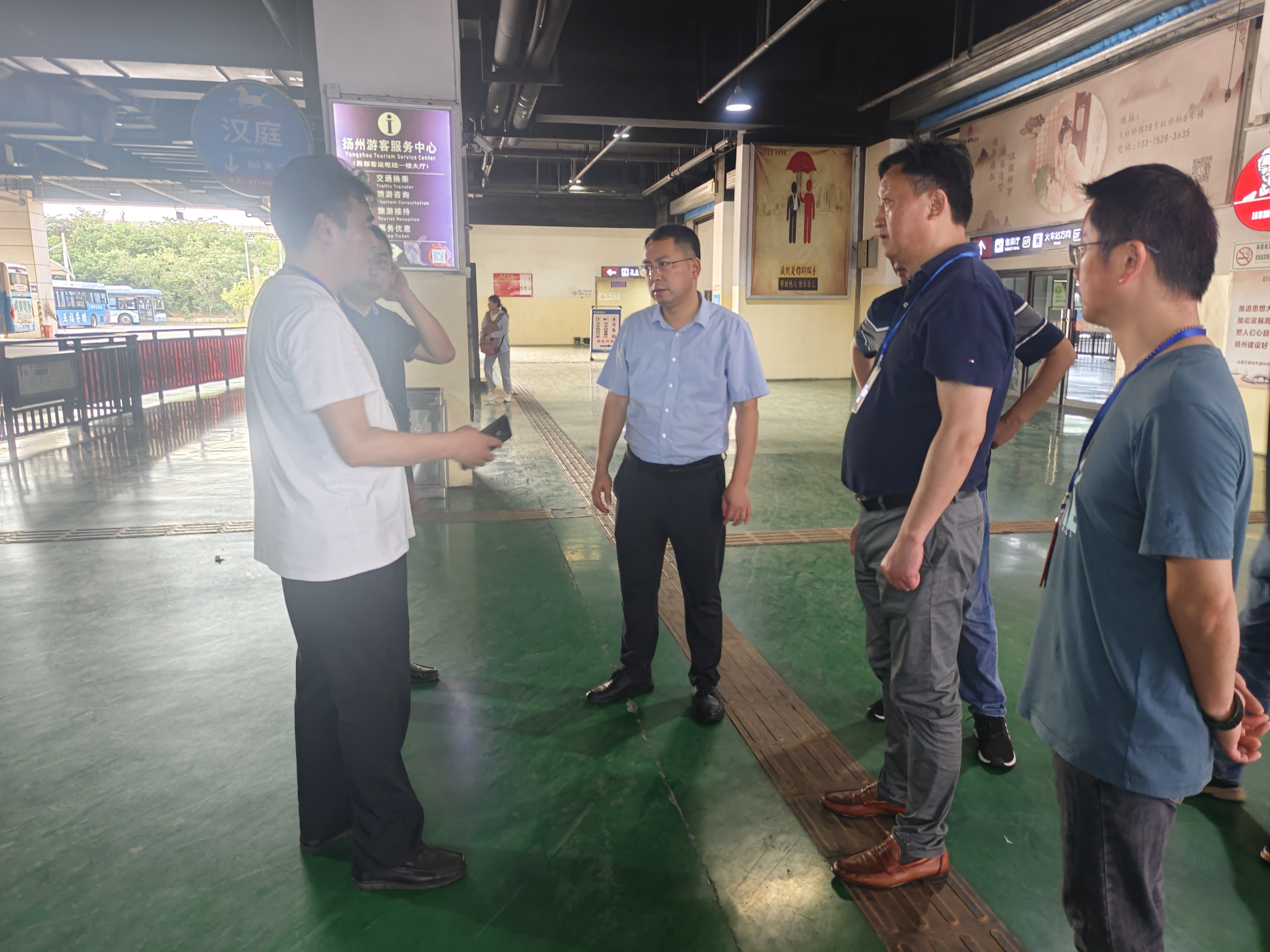 為落實好“安全生產(chǎn)月”活動要求,緊扣“人人講安全、個個會應(yīng)急”主題,近日,市交通產(chǎn)業(yè)集團副總經(jīng)理,揚汽集團黨委書記、董事長龔宇峰帶隊檢查揚州汽車站安全生產(chǎn)工作,集團副總經(jīng)理劉俊及相關(guān)部門負責(zé)人陪同檢查。