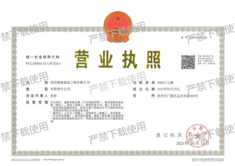 揚(yáng)州捷能基礎(chǔ)工程有限公司完成企業(yè)登記